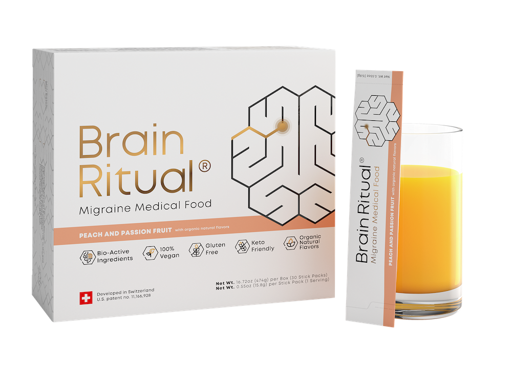 Many ingredients of Brain Ritual® have been evaluated in clinical migraine studies and the key ingredient is patented by us for use in migraine. Please refer to the scientific literature below:U.S. Patent No. 11,166,928 „Migraine Prevention and Treatment”Gross, et al., Defining metabolic migraine with a distinct subgroup of sufferers with suboptimal inflammatory and metabolic markers (2023). Scientific Reports, 13(1), 3787.Hajihashemi, et al., The effects of concurrent Coenzyme Q10, L-carnitine supplementation in migraine prophylaxis: A randomized, placebo- controlled, double-blind trial, Cephalalgia (2019). Ghorbani, et al., Vitamin D3 might improve headache characteristics and protect against inflammation in migraine: a randomized clinical trial, Neurological Sciences (2020).Schoenen, et al., Effectiveness of high-dose riboflavin in migraine prophylaxis, American Academy of Neurology (1998). Peikert, et al., Prophylaxis of migraine with oral magnesium: results from a prospective, multi-center, placebo-controlled and double-blind randomized study, Cephalalgia (1996). Kӧseoglu, et al., The effects of magnesium prophylaxis in migraine without aura, Magnesium Research (2008). Rozen, et al., Open label trial of coenzyme Q10 as a migraine preventive, Cephalalgia (2002). Shoeibi, et al., Effectiveness of coenzyme Q10 in prophylactic treatment of migraine headache: an open-label, add-on, controlled trial, Belgian Neurological Society (2016). Karimi, et al., The efficacy of magnesium oxide and sodium valproate in prevention of migraine headache: a randomized, controlled, double-blind, crossover study, Belgian Neurological Society (2019).Boehnke, et al., High-dose riboflavin treatment is efficacious in migraine prophylaxis: an open study in a tertiary care centre, European Journal of Neurology (2004). Rahimdel, et al., Effectiveness of Vitamin B2 versus Sodium Valproate in Migraine Prophylaxis: a randomized clinical trial, Electronic Physician (2008) For a references list please click here